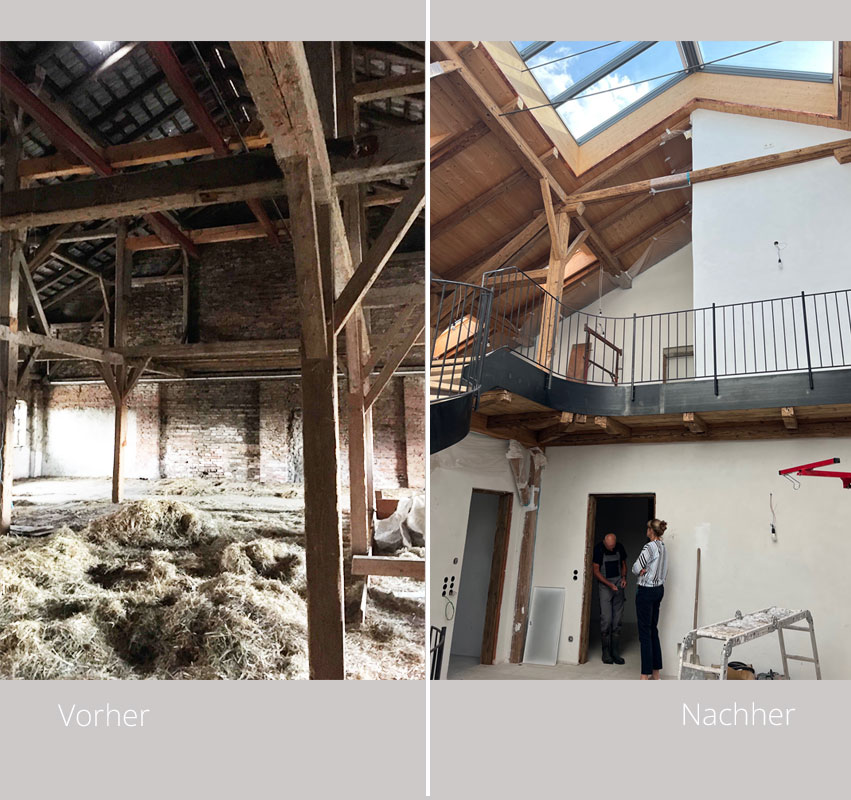 Ausbau einer Scheune mit Kuhstall zu einer Wohnung.