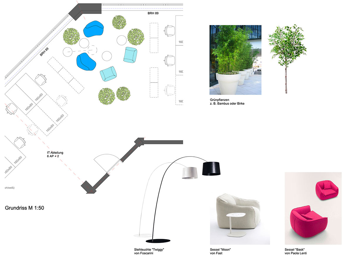 Umgestaltung der Aufenthaltsbereiche in einem Büro