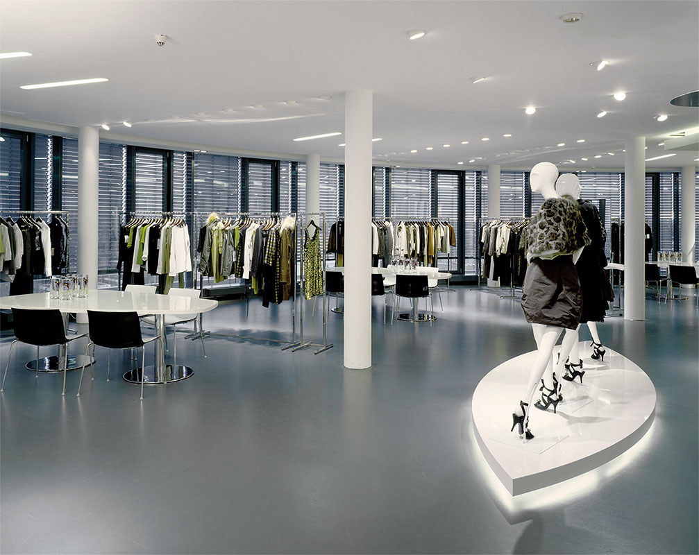 Für das Münchner Modelabel Laurèl wurde der Showroom in einem modernen Glasgebäude gestaltet
