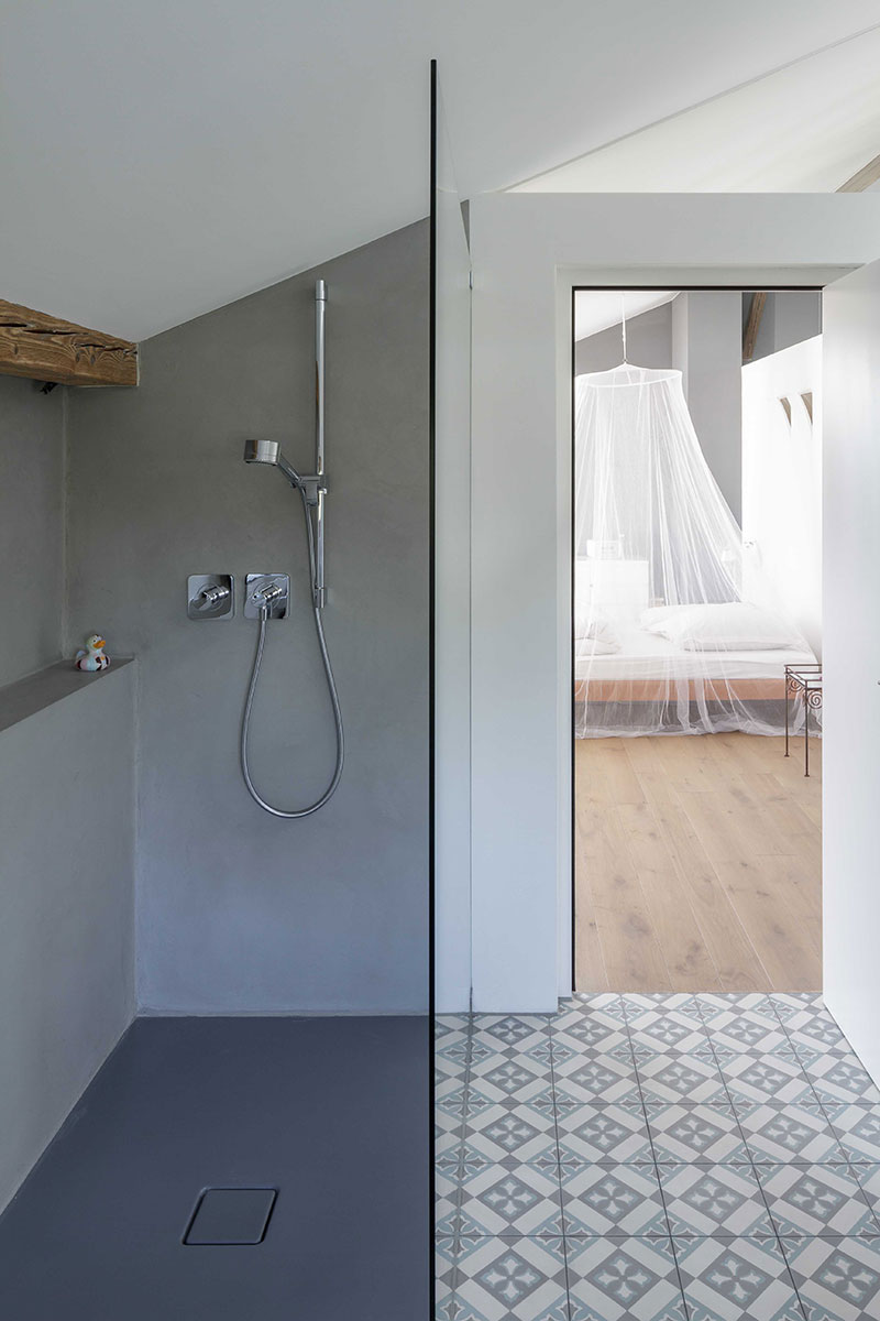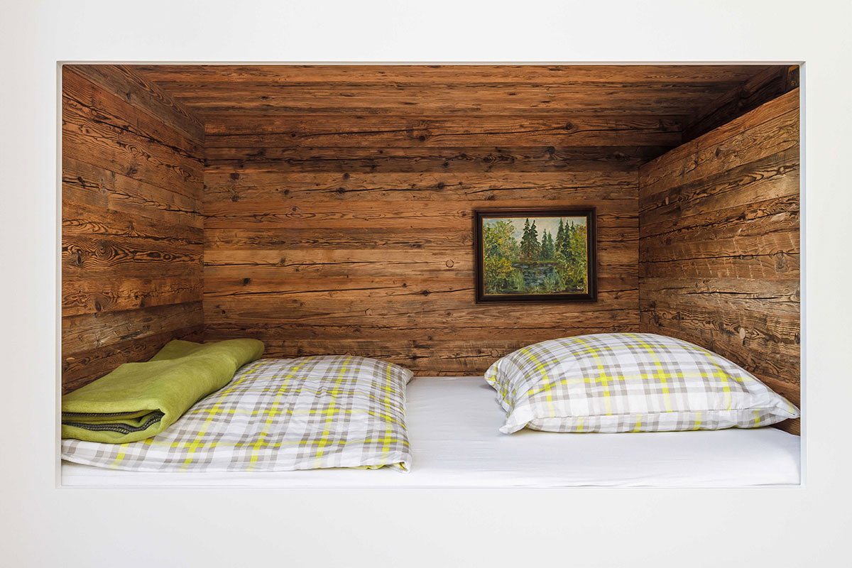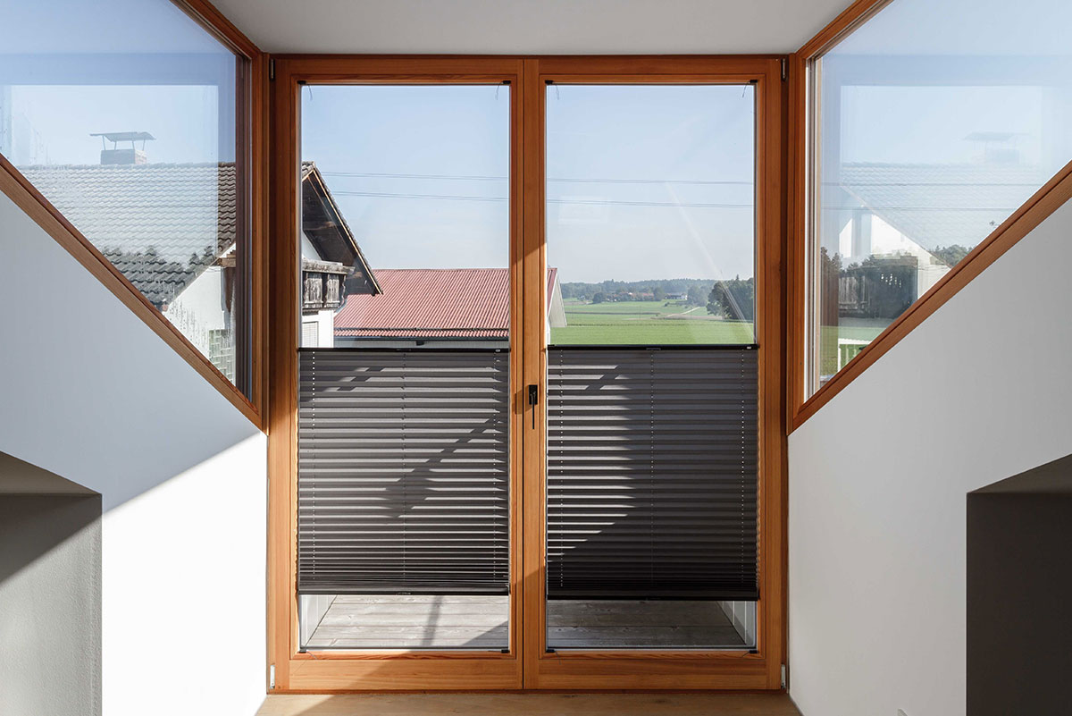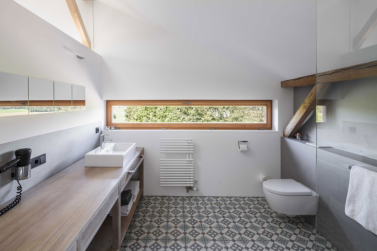 In einem bereits umgebauten ehemaligen Bauernhaus im Chiemgau sind aus der Scheune, die zwischenzeitlich als Schreinerwerkstatt genutzt worden ist, zwei Wohneinheiten entstanden. Wohnung 1 hat eine dreiseitig verglaste Schleppgaube erhalten, um den Bergblick auf die schöne Alpenkette mit der Kampenwand zu erhalten. Wohnung 2 wurde mit einem großen Panoramfenster ausgestattet, das ebenfalls den Blick auf die Berge frei gibt. Die Raumhöhe beträgt bis zu 6 Meter und wurde durch verschiedene Podeste geschickt genutzt. Der Dachstuhl blieb nahezu unverändert, damit die ursprüngliche Nutzung der Scheune erlebbar bleibt.